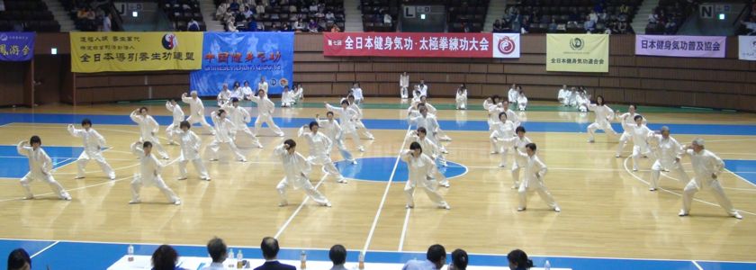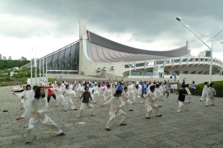 自然身法研究会は集体に「陳式混元太極拳24式」と「波動功」で表演しました。