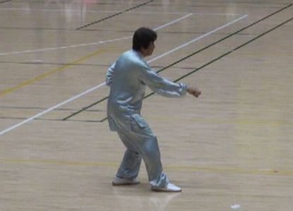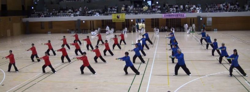 自然身法研究会は集体に「太極棒・波動功」と「陳式混元太極拳24式」で表演しました。 個人競技にも3名が出場しました。 日中オールスターズ表演で、自然身法研究会 出口衆太郎代表が混元砲捶を表演しました。